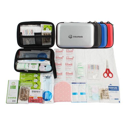 총 17가지의 응급 용품이 포함되어 있어 가벼운 상처부터 위급한 상황까지 폭넓은 응급 처치가 가능합니다. 반창고, 소독용 티슈, 가위 등 다양한 구성품이 있어 실용성이 높으며, 구급함판촉물로도 큰 인기를 끌고 있습니다. 🩹