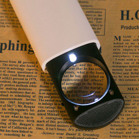 어두운 곳에서도 글씨나 세밀한 부분을 쉽게 볼 수 있도록 LED 조명이 탑재되어 있습니다. 독서확대경이나 휴대용돋보기로 사용하기 좋습니다.