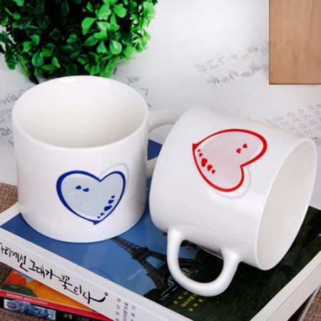 - 사랑스러운 하트 패턴이 돋보이며, 감성적인 분위기를 자아내는 머그컵 제작 아이템.