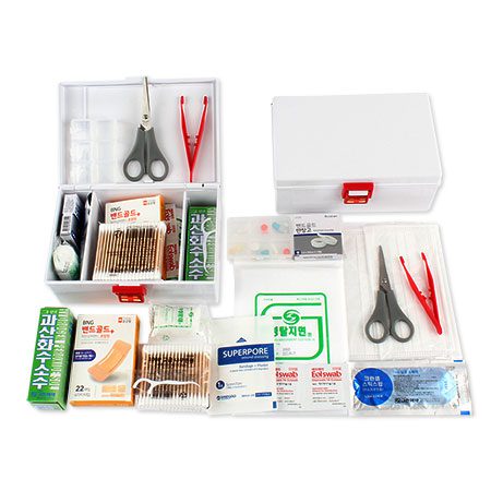 - 과산화수소, 드레싱밴드, 알코올 스왑 등 총 15종의 필수 응급 용품 포함.